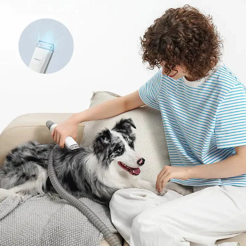 ブラッシング、バリカン、トリミング、掃除機、吸引機能が一体化されており、ペットの毛を簡単に処理。
